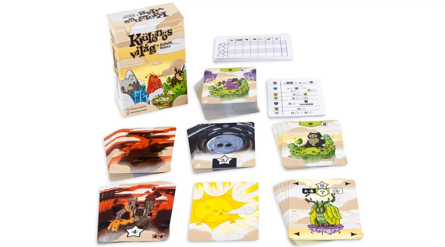 A Különös világ a felhők felett könnyed kártyajáték, amelyben minden játékosnak egy saját, 4x4 kártyából álló világot kell megépítenie. Vigyázat! A dimenziókapuk kinyitása idegen utazókat vonz, a vulkánok kitörést idéznek elő, és a földevők bizony meglepően hatékonyan rombolnak. A stratégiai elrendezés és a kártyák közötti kapcsolatok létfontosságúak a sikerhez.