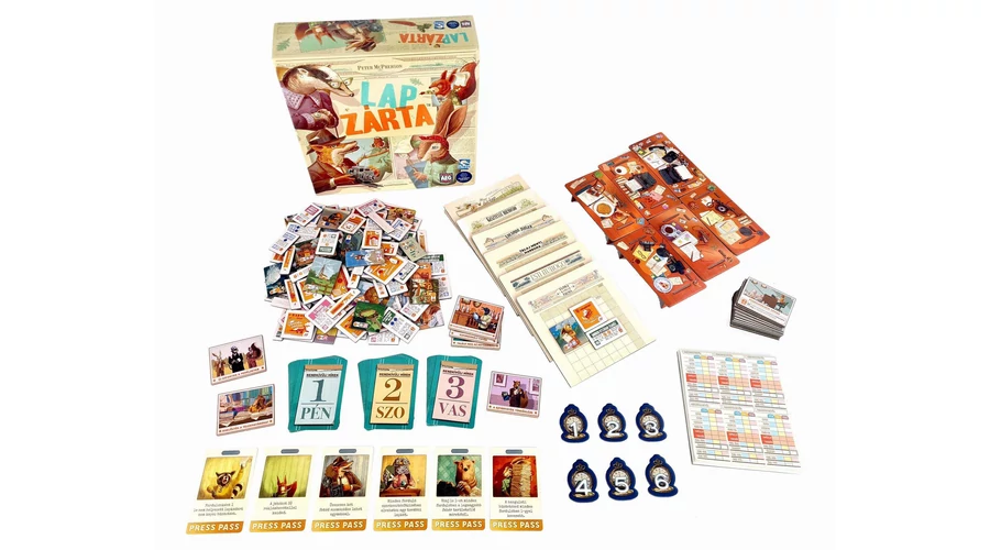 A Lapzárta könnyen tanulható, gyorsasági lapkalehelyezős családi társasjáték. A játékosok korlátozott idő alatt állítják össze az újságuk címlapját különböző hírekből, fotókból, reklámokból, hogy az ő lapjuk legyen a legolvasottabb...