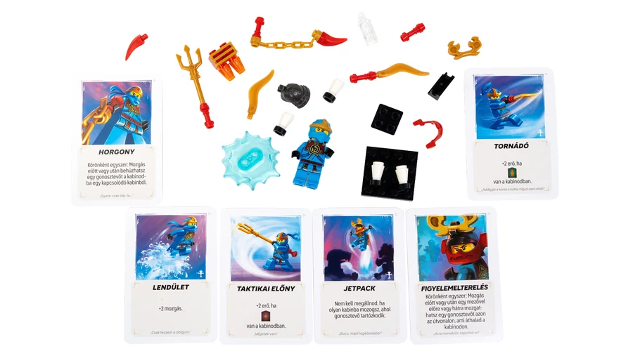 A játék küldetéskártyákra épül, amelyek meghatározzák az aktuális eseményeket, szabályokat és nehézségi szinteket. Ezek gondoskodnak arról, hogy minden parti más történetet meséljen el, és mindig új helyzetek elé állítsa a csapatot. A küldetések során eseményeket oldotok meg, mozgatjátok a nindzsákat, majd megküzdötök az ellenségekkel. A harc közös erőre épül: a Spinjitzu tornádók és a képességkártyák segítségével növelhetitek a támadóerőtöket, és hatékonyabban vehetitek fel a küzdelmet az ellenséggel.