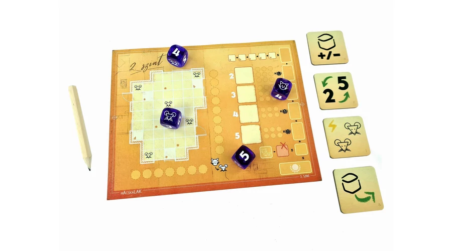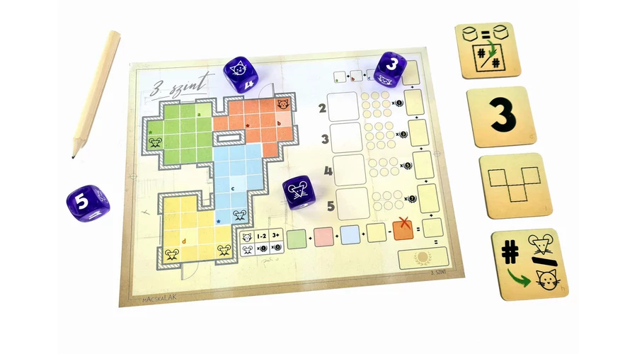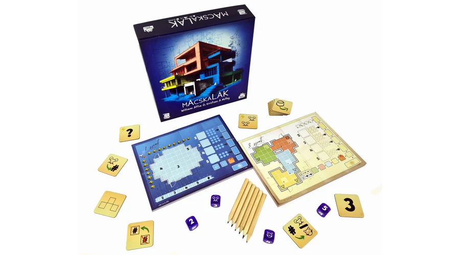 A Macskalak cuki „válassz és írj” típusú családi társasjáték. A játékosok a kockadobásoknak megfelelően alakítanak ki szobákat a macskáik számára: szintről szintre újabb szabályokkal...