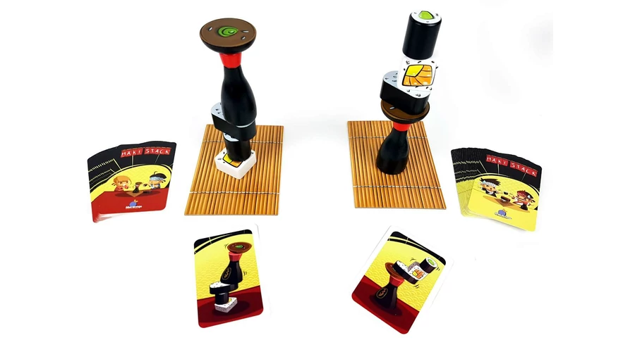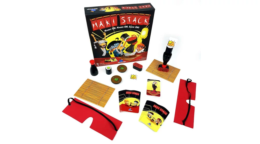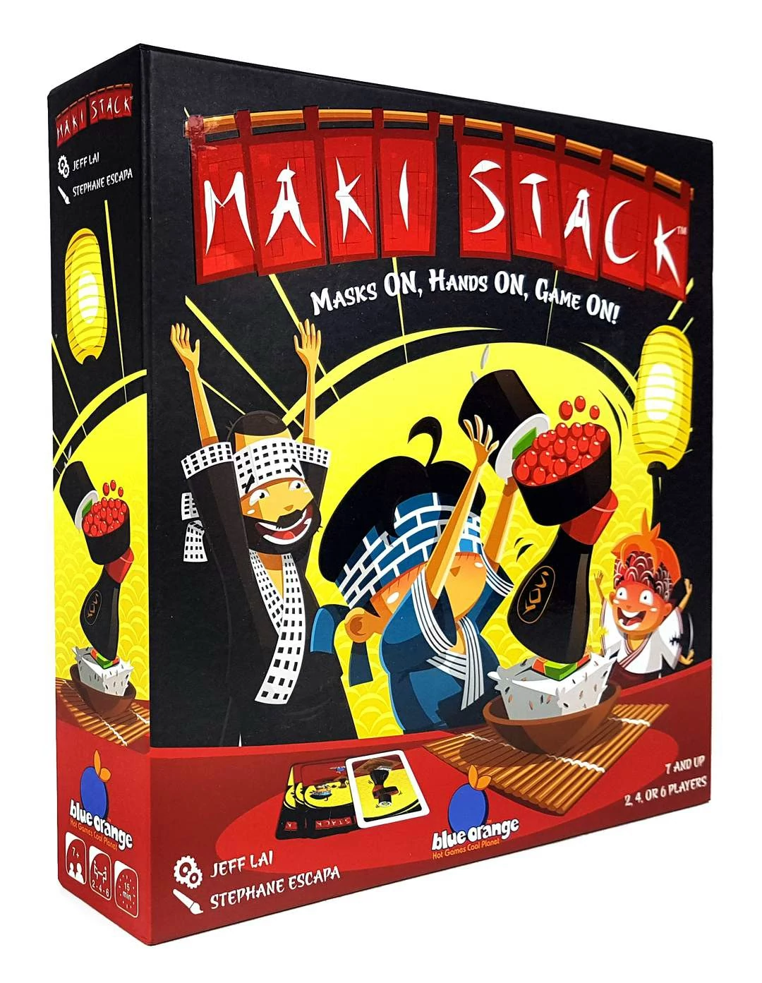 Ki az ügyesebb szusiszakácspár? A Maki Stack könnyed ügyességi családi társasjáték. A játékosok párban próbálják a felcsapott kártyának megfelelően a szusikat egymásra pakolgatni – időnként bekötött szemmel... A kommunikációt, az együttműködést és az ügyességet fejlesztő társasjáték.