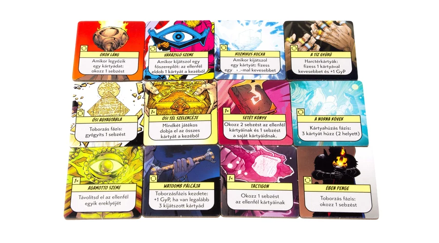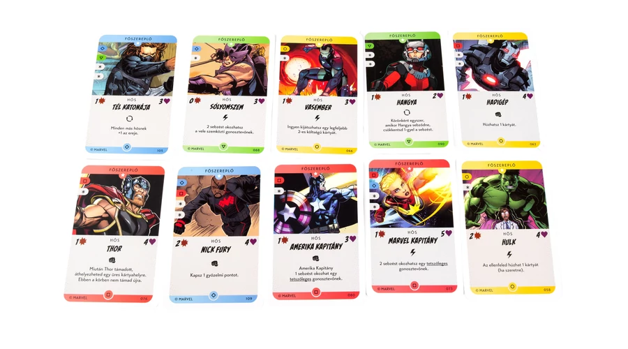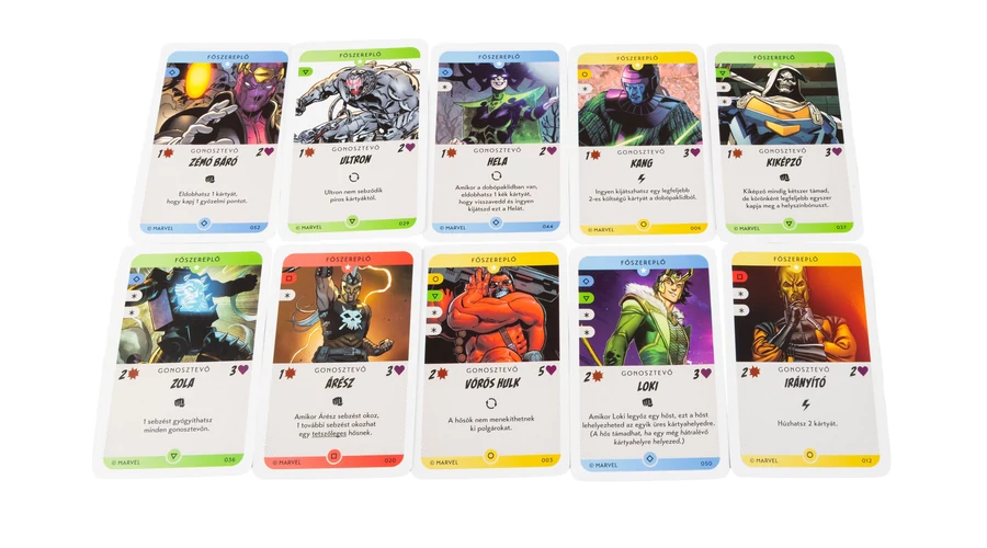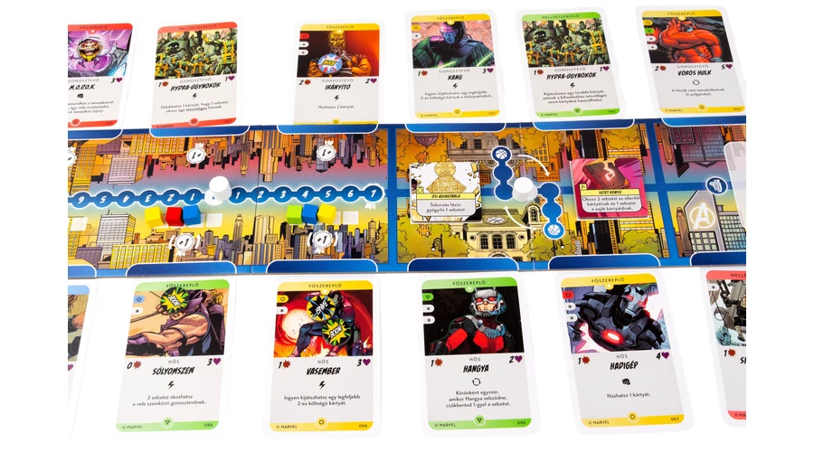 A hősök polgárokat mentenek és hőstetteikkel szereznek pontokat, míg a gonosztevők rombolással és káosszal növelik hatalmukat. Minden lap más-más lehetőséget rejt: azonnali hatásokat, hosszabb távú erősítéseket vagy meglepő fordulatokat. A legendás ereklyék, mint a Kozmikus Kocka vagy a Setét Könyv, bármelyik pillanatban megfordíthatják a küzdelmet.