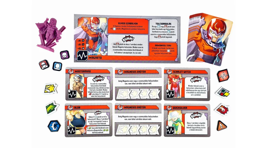 A Marvel United – X-MEN játékban ikonikus X-Men hősökként dolgoztok össze, hogy a játék, vagy egy másik játékos irányította főgonosz terveit meghiúsítsátok. Minden főgonosz a saját titkos tervének végrehajtásán fáradozik, melyeket különböző hatásokkal rendelkező kártyák és fenyegetések jelenítenek meg, ezekkel állítva kihívások elé a hősöket a különböző helyszíneken. A hősöknek gondosan meg kell választaniuk az általuk kijátszott kártyákat, melyek nem csak akciókat és szuperképességeket kínálnak, de össze is kombinálhatóak más hősök kártyáival! Meséljetek el egy történetet, fogjatok össze, és mentsétek meg a világot!