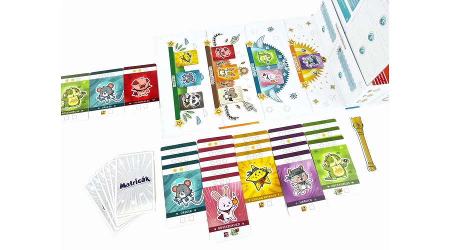 A Matricák különleges szettgyűjtögetős társasjáték gyerekeknek, amelyben a kis játékosok nem csak egyre nagyobb gyűjteményt építhetnek, de változtathatnak a benne lévő állatkák (kártyafajták) értékén is. Mi több, a játék partiról partira fejlődik: a kártyákra ragasztható matricákkal képességekkel ruházhatják fel azokat, vagy több győzelmi pontot rakhatnak rá.