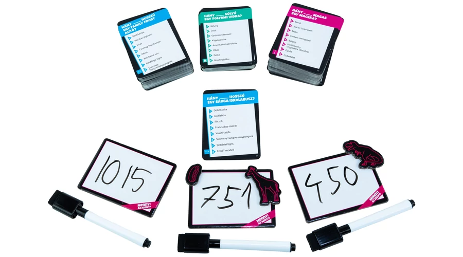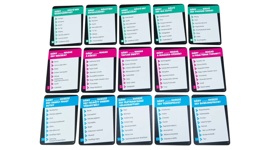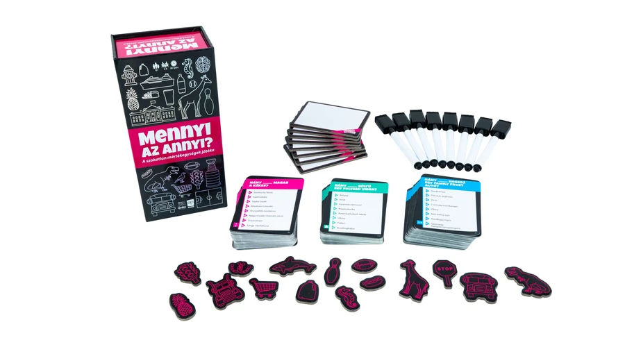 A Mennyi az annyi? gyors, vicces és teljesen eszement játék, ami feldobja a baráti összejöveteleket, családi estéket és bulikat egyaránt. Mert valljuk be: ki ne akarná tudni, hány focilabda magas egy zsiráf?