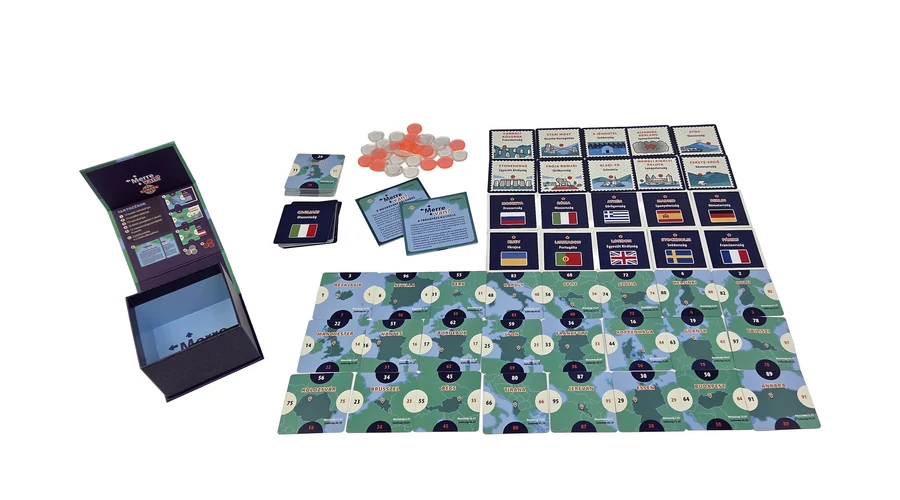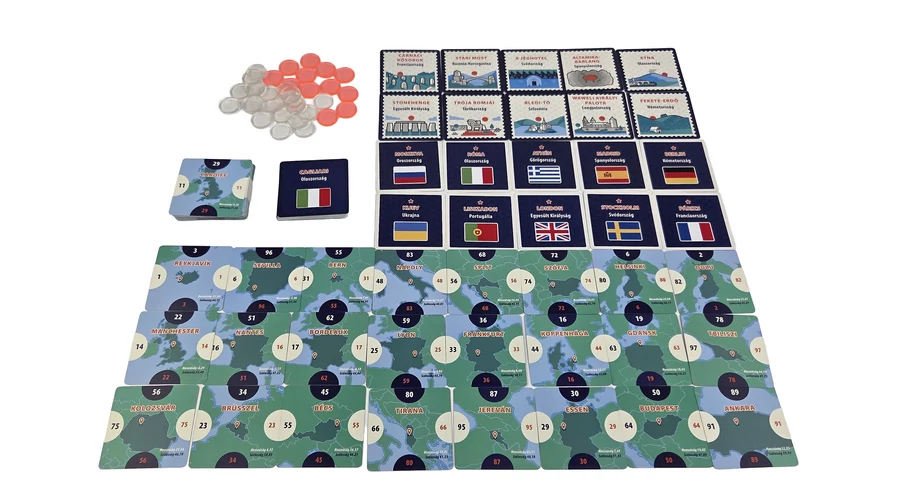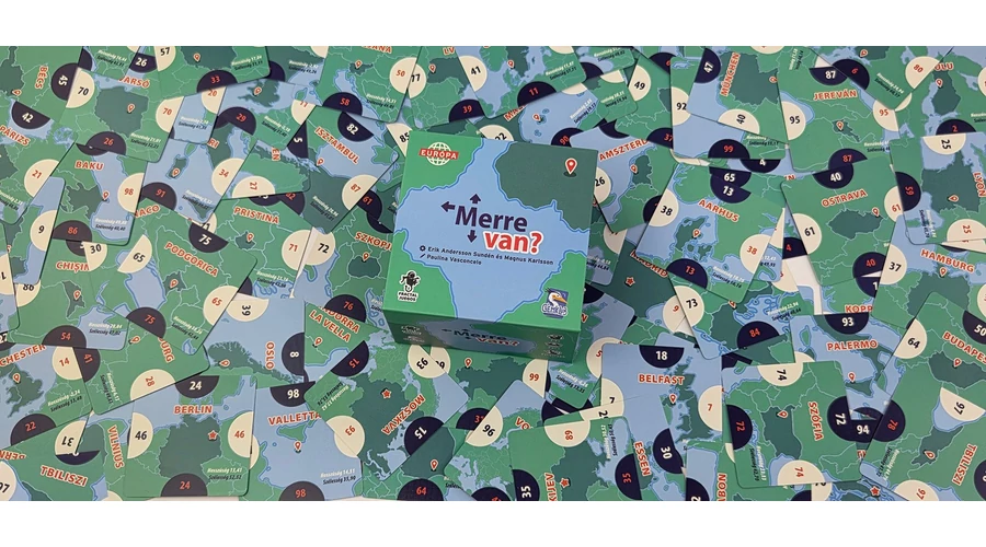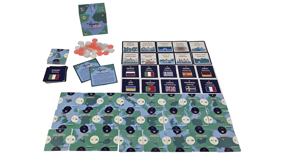 A Merre van?: Európa egy pörgős, térképes családi társasjáték, ahol Európa városait kell a megfelelő helyre illesztened – fejben, érzésre és néha vakmerően. Minél pontosabban eltalálod, annál több pontot gyűjtesz.