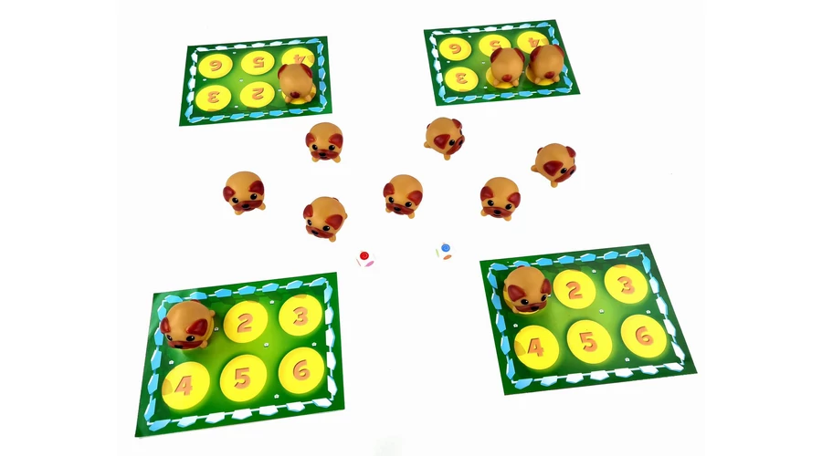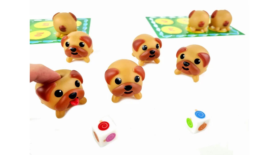Dobj két kockával, hogy megtudd, mely nyalókák színét keresed. Ezután cirógass meg két mopszot, és ha a nyelve olyan színű, amilyet keresel, tedd a parkodba! Aki először összeszed hatot, az nyer!