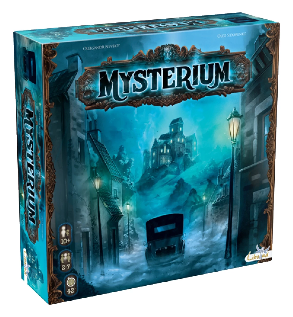 A Mysterium nagyon hangulatos, kooperatív partijáték. Az egyik játékos gyönyörű kártyák segítségével, Szellemként fogja rávezetni a többi játékost arra, hogy kik, hol és mivel követtek el gyilkosságokat az ódon kastély falai között. A kommunikációt és a kreativitást fejlesztő társasjáték.