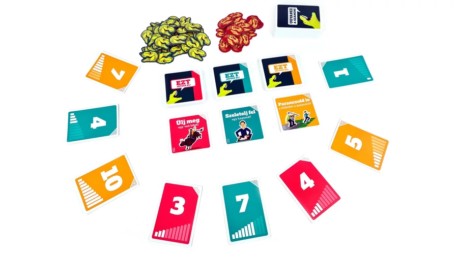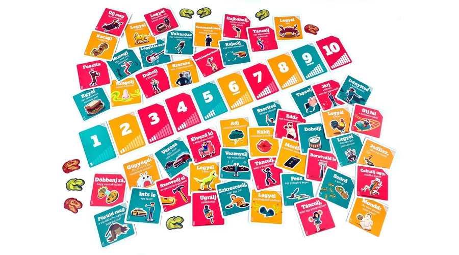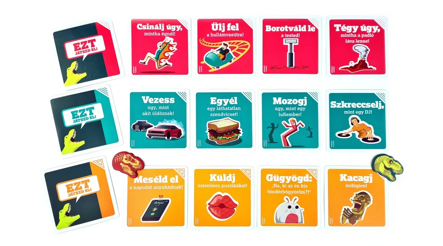 Ebben a frenetikus hangulatú extrém partijátékban nincs más dolgotok, mint az asztal közepén lévő háromból az egyik bolond feladatot teljesíteni, például úgy szkreccselni, mint egy DJ, vagy úgy vezetni, mint akit üldöznek, vagy le kell parancsolni a kölköket a gyepetekről – de az előadásotokban nem az a lényeg, hogy mennyire élethű, hanem hogy mekkora az intenzitása! Ha a többiek közül valaki úgy gondolja, hogy az előadásotokhoz hasonló intenzitású kártya van az ő kezében, csak egymás felé kell csúsztassátok a kártyáitokat, hogy kiderüljön, jogosultak vagytok-e egy Tök jó! jelzőre.