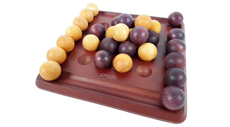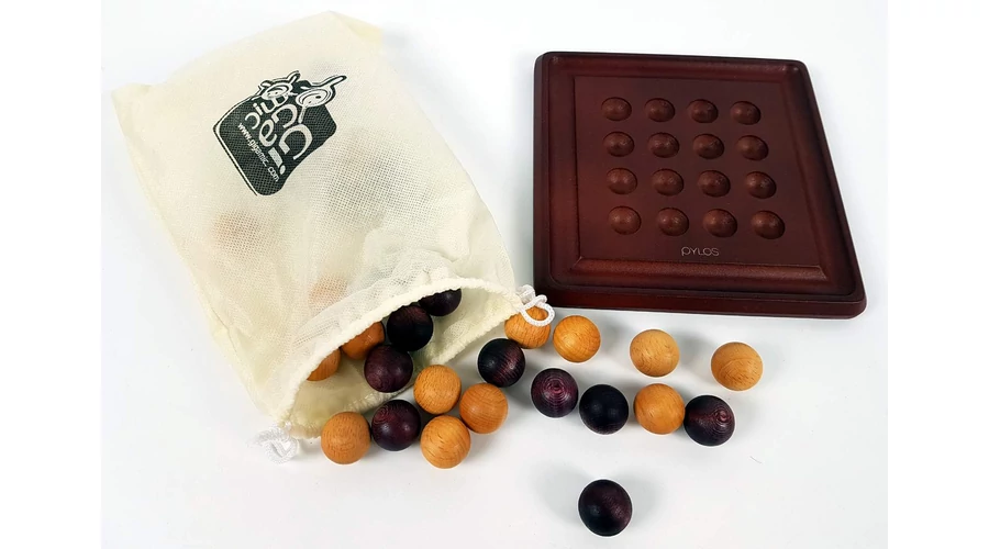 Tedd fel a piramis csúcsát! A Pylos Mini utazáshoz ideális, letisztult, klasszikus logikai társasjáték. A játékosok felváltva tesznek fel egy golyót a piramisra, de akinek sikerül egy négyes csoportot alkotnia, levehet egy vagy két golyót...