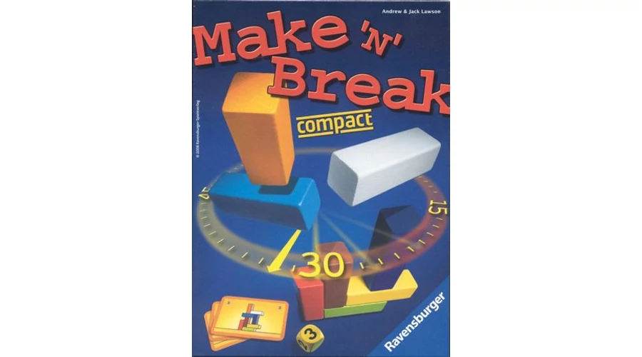 A Make N Brake építőjáték hordozható, úti játék változata. Versenyre kelve az idővel, kockáról kockára minél gyorsabban meg kell építenünk a kihúzott építőkártyán látható, 10 színes építőkockából álló lehetetlen építményt. Az idő lejártával pontokat kapunk az építmény állapotától függően.