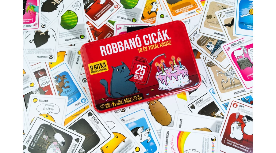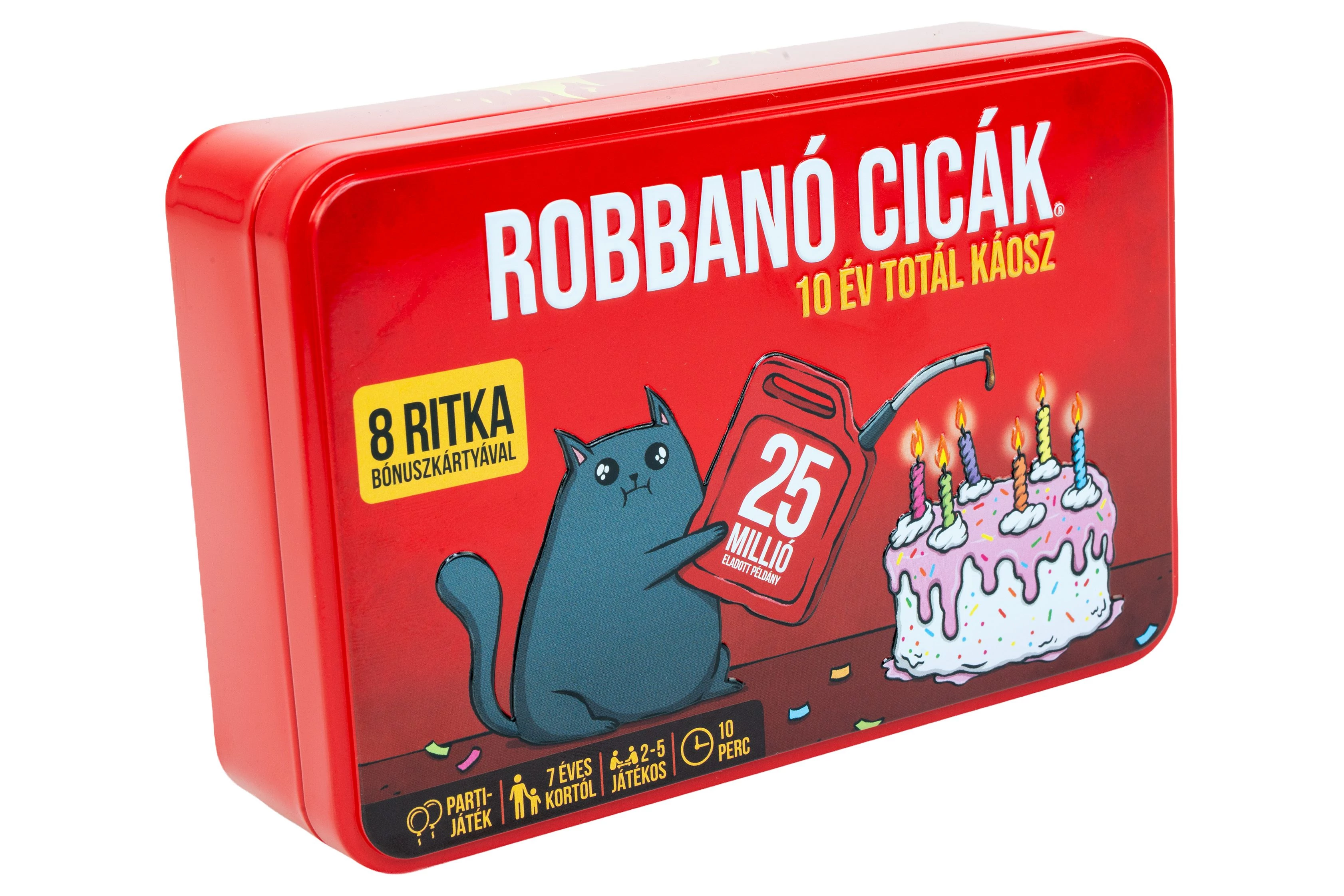 A Robbanó cicák pörgős és vicces extrém partijáték. Ebben a társasjátékban a játékosok meg akarják úszni, hogy robbanó cica kártyát húzzanak a pakliból. Ezért ravasz trükköket vetnek be: lapokat csennek egymástól, megakadályozzák kártyák kijátszását, a megfelelő pillanatban újrakeverik a paklit...