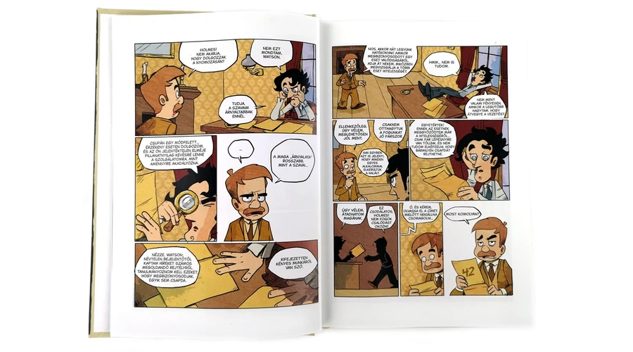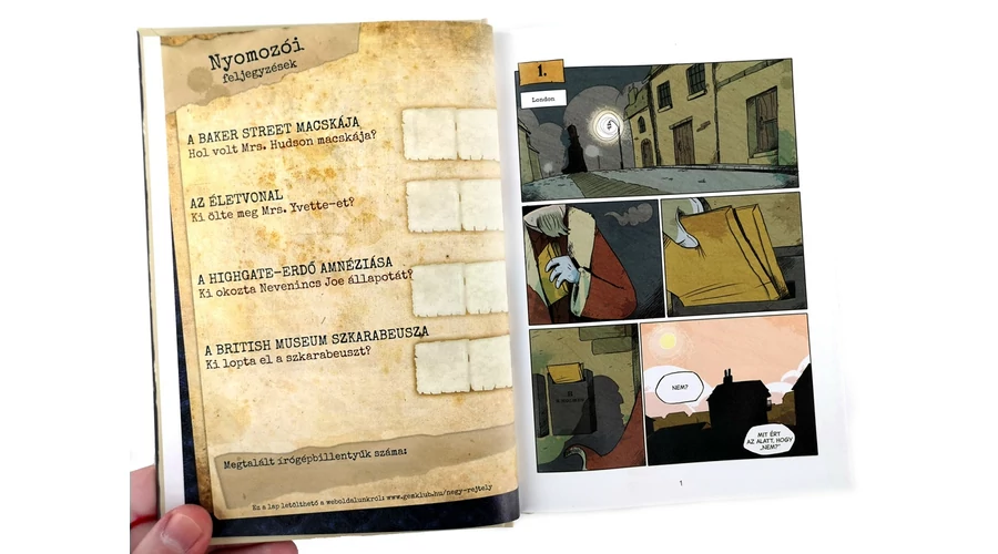 Képregényes kaland! Bújj Sherlock Holmes vagy Watson doktor bőrébe, és oldj meg négy bűnesetet! A Sherlock Holmes – Négy rejtély egyszemélyes képregénykaland (KRK) 14 éves kortól, felnőtteknek is. A játékos Sherlock Holmes vagy Dr. Watson szerepébe bújik, hogy felderítsen négy bűntényt. A krimi főszereplőjeként a döntései szerint kell a képregény megfelelő képkockáihoz lapoznia, nyomokat keresve, kihallgatva a tanúkat, felgöngyölítve a szálakat – egészen a megdöbbentő végkifejletig! Különleges élmény – nem csak társasjátékosoknak!