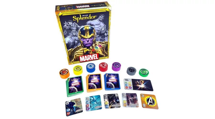 Versenyfutás a Végtelen Kesztyűért. A Végtelen kövek segítségével Marvel szuperhősöket és szupergonoszokat toborozhatunk, akikkel újabb karakterekhez juthatunk – egészen a győzelemig! Könnyen tanulható családi társasjáték nem csak rajongóknak! A klasszikus Splendor újragondolt, tematikus változata.