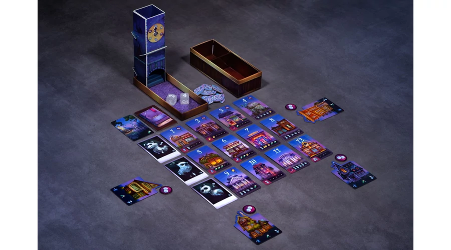 Ha egy felfordított kártyán szellem jelenik meg, azonnal megszerezted – de a bónuszok, extra dobások és különleges hatások miatt mindig mérlegelned kell, mikor érdemes megállni, és mikor kockáztatsz tovább. A park- és a nyomjelzők további lehetőségeket adnak, az óratorony pedig folyamatosan alakítja a játékmenetet.