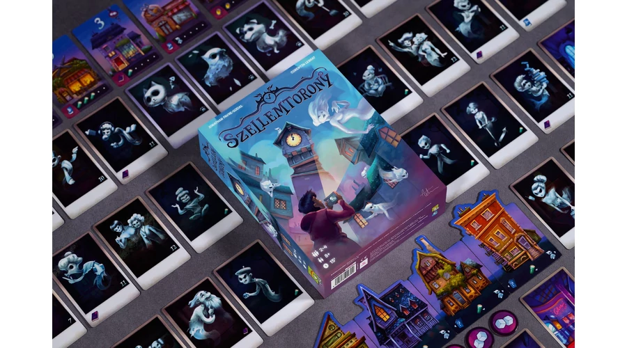 A Szellemtorony egy könnyen tanulható, mégis izgalmas családi társasjáték, ahol szellemvadászként járjátok be a várost, fotózzátok a rejtőzködő lényeket, és versenyt futtok az amulettdarabkákért. A kockadobás, a lapkombinálás és a jó időzítés együtt dönt arról, ki lesz a legügyesebb vadász.