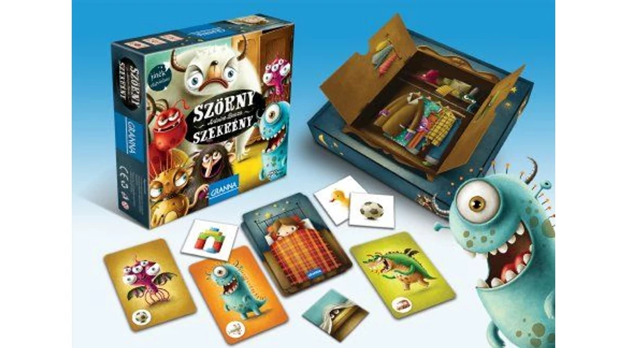 Kergesd be a szörnyeket a szekrénybe! A Szörnyszekrény együttműködős családi társasjáték a legkisebbeknek. A játékosok a memóriájuk segítségével találják meg a szörnyecskéket elűző játékokat.