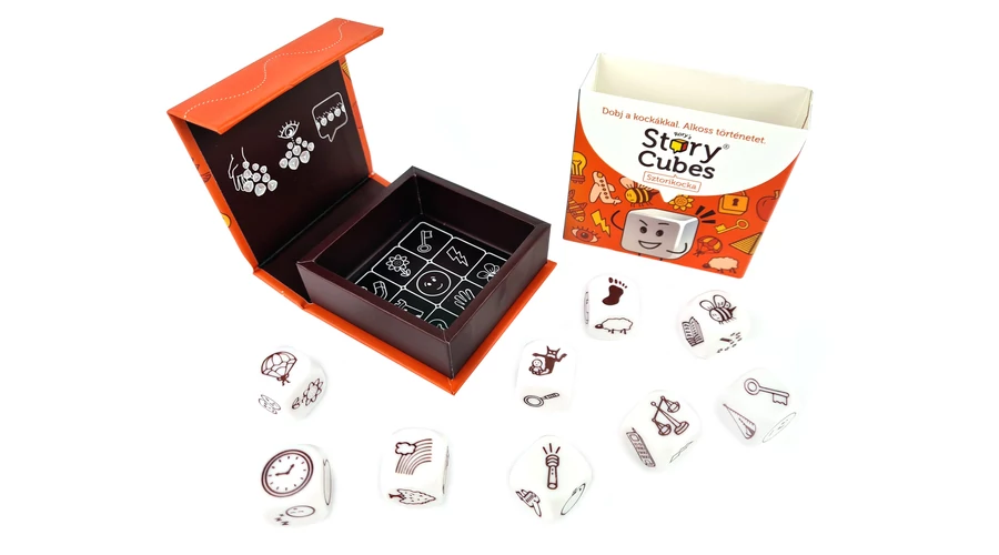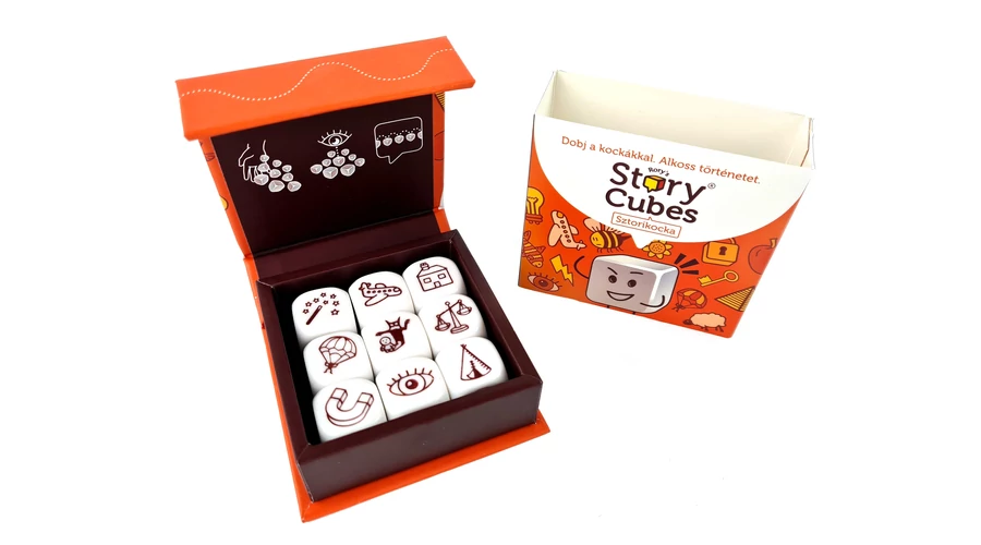 Dobjatok a kockákkal, és meséljetek el együtt egy történetet! A Sztorikocka történetmesélős családi partijáték nagyobb társaságoknak is. A játékosok a kidobott szimbólumokat történetbe fűzik, kötöttségek nélkül: mesélhetnek felváltva, külön-külön saját sztorit – vagy akár közösen, folytatva egymás gondolatait. Ebben az alapkészletben egyszerűbb szimbólumokat találunk. Sokféle, tematikus készlettel és kiegészítővel kombinálható. A kreativitást, a szókincset és az önkifejezést fejlesztő társasjáték.