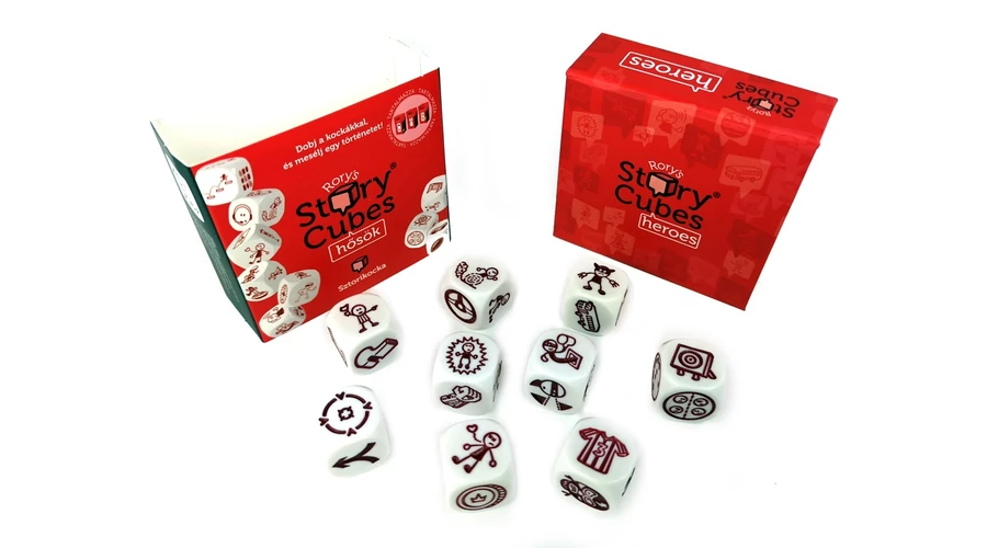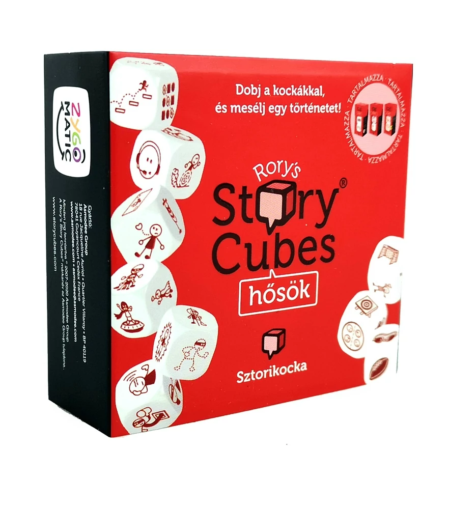 Dobjatok a kockákkal, és meséljetek el együtt egy menő történetet! A Sztorikocka Hősök történetmesélős családi partijáték nagyobb társaságoknak is. A játékosok a kidobott szimbólumokat történetbe fűzik, kötöttségek nélkül: mesélhetnek felváltva, külön-külön saját sztorit – vagy akár közösen, folytatva egymás gondolatait. Ezzel az alapkészlettel a sportok, a szuperhősök és a videójátékok világában kalandozhatunk. Sokféle, tematikus készlettel és kiegészítővel kombinálható. A kreativitást, a szókincset és az önkifejezést fejlesztő társasjáték.