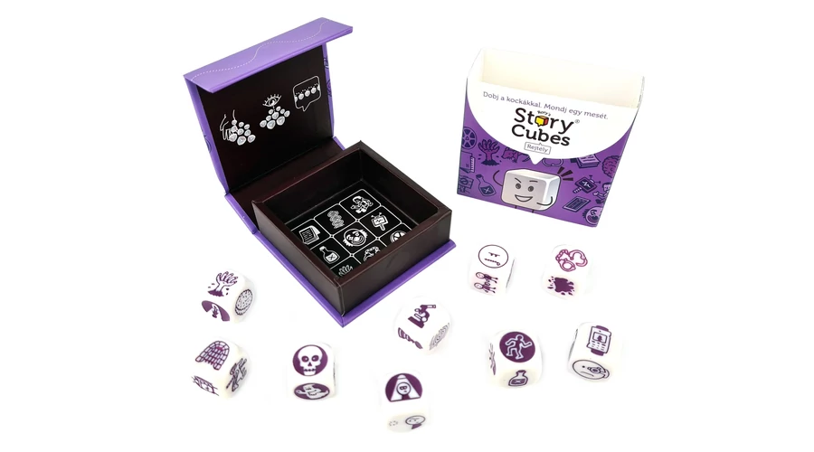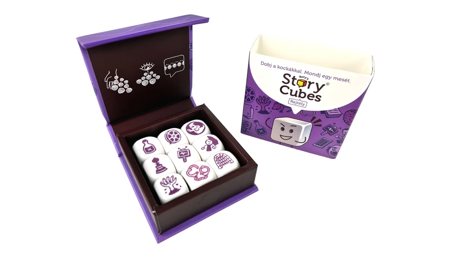 Dobjatok a kockákkal, és meséljetek el együtt egy titokzatos történetet! A Sztorikocka Rejtély történetmesélős családi partijáték nagyobb társaságoknak is. A játékosok a kidobott szimbólumokat történetbe fűzik, kötöttségek nélkül: mesélhetnek felváltva, külön-külön saját sztorit – vagy akár közösen, folytatva egymás gondolatait. Ezzel az alapkészlettel a krimik, a titkok és rémmesék világában kalandozhatunk. Sokféle, tematikus készlettel és kiegészítővel kombinálható. A kreativitást, a szókincset és az önkifejezést fejlesztő társasjáték.