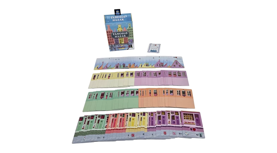 A végeredmény mindig színes és kicsit romantikusan bohókás, de hogy mindez hány pontot ér, az már a játék közben hozott döntéseiteken múlik. A Táncoló házak percek alatt tanítható, pörgős kártyajáték, ideális választás családi játékestekhez vagy egy könnyedebb, mégis gondolkodtató partira – a kis doboznak hála pedig bármikor elő is kerülhet akár egy kabátzsebből.