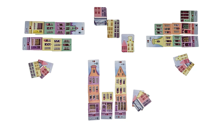 Minden körben új lapokat húztok a kezetekbe, ezek közül egyet beépítetek az utcátokba, a megmaradó kártyákat pedig továbbadjátok. A házakat egymás mellé és egymásra építitek, és hamar látjátok majd, hogyan „táncolnak” jobbra-balra, ahogy alakul az utcakép. A játék végén minden egyes épület külön pontozódik a magassága, az alapja és a rajta látható díszítések alapján. Emellett extra pontot érnek a nagy, összefüggő, azonos színű házcsoportok is, így az utcakép egészét is érdemes előre megtervezni.