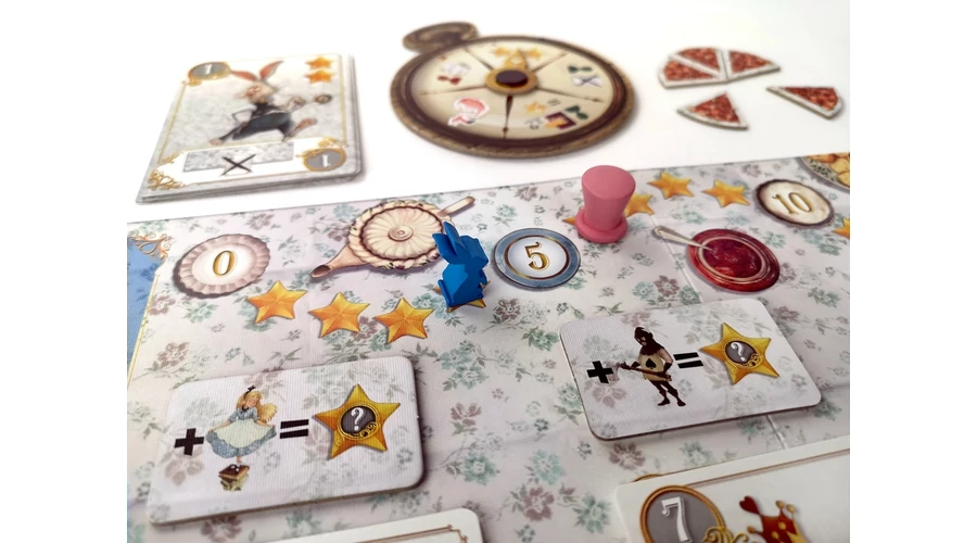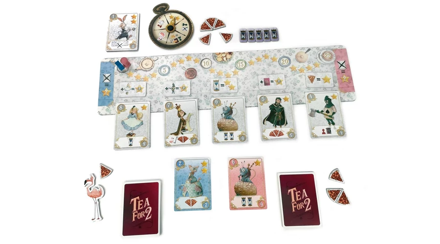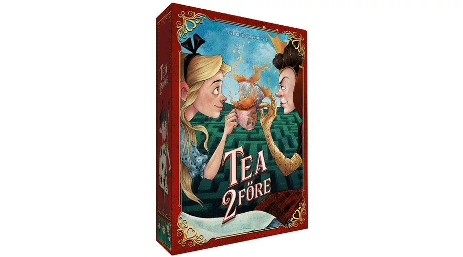 Egy csésze tea mellett születnek a legfontosabb döntések... A Tea 2 főre könnyed kétfős társasjáték az Alice Csodaországban világában. A játékosok egyszerre csapnak fel egy-egy lapot a húzópaklijukból, és a párbaj győztese dönti el, hogy a kártya képességét használja-e vagy újat vásárol a paklijába.