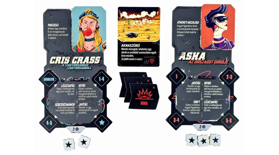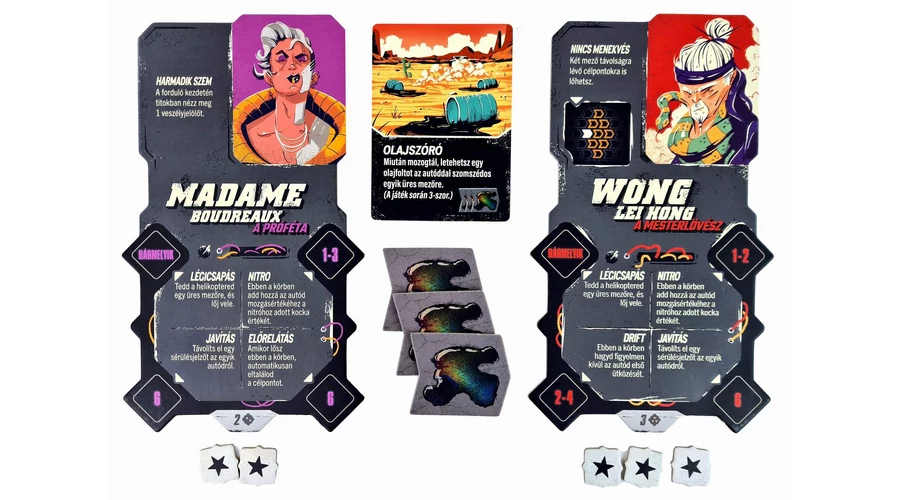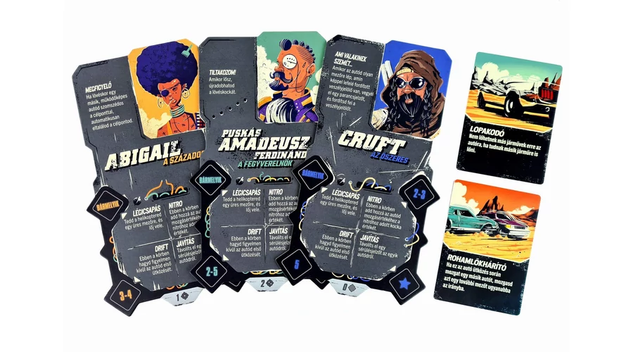 Már érzed a vér szagát, a benzingőzt, az arcodba vágó homokot, de kéne egy kis plusz, mert a csapat nem úgy arat, ahogy kéne neki? Talán épp Asha, az országút úrnője kell nektek, vagy egy dilis dodzsemes, mint Bumpo bohóc? Esetleg Vince Vamp, a Nitromanta vagy Wong Lei Hong, a mesterlövész? Kinek a sebességmámor, kinek az erőszak mámora adja a turbót, de van, aki az útszéli hulladékban is meglátja a lehetőséget.