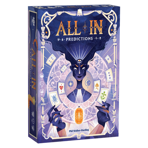 All in: Predictionsben a póker, ez a mindenki által ismert klasszikus egészen új megvilágításba kerül: látnoki képességeiteket arra használhatjátok, hogy a kezetekben tartott lapkombinációt minél erősebbé formáljátok. Közben persze figyelni kell a többi játékosra is, hogy hiszen a jövő hajlítgatásának képességét mindenki megkapja - különben csalás lenne. Ha jól játszotok, képesek lesztek megjövendölni, kinek a kezében lapul majd a legerősebb szett, és ez ebben a játékban nemhogy aranyat, de gyémántot ér! Ugyanis minden forduló végén a felépített kominációk értékén felül, további pontokat szerezhettek, ha helyesen tippelitek meg, kié a legerősebb kéz!