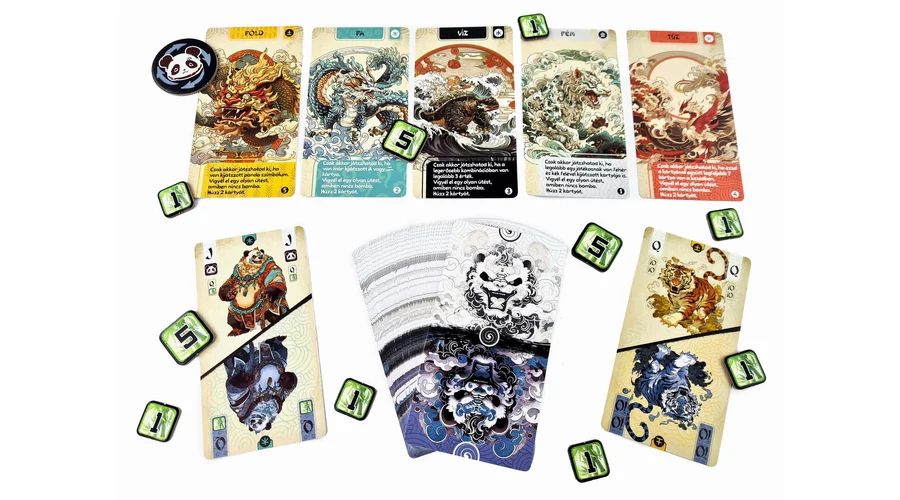 Az ősi kínai bölcsesség csupa szín és csupa mozgás: az égtájak mitikus állatainak körtánca, a minden dolgok változását leíró öt elem tana, a zodiákusok körforgása, ahol a tűzsárkányt a földkígyó követi, és most itt egy mindezekből összegyúrt fordulatos kártyajáték: Az Ütős pandák!