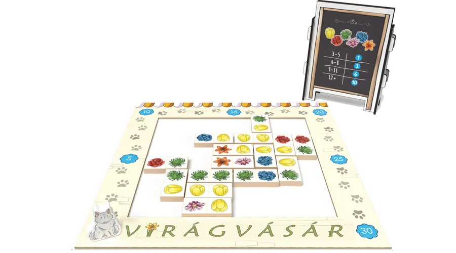 A holland virágvásárban minden pillanat számít: vársz, hogy olcsóbb legyen a hortenzia és a tulipán, vagy azonnal lecsapsz rájuk, nehogy a rivális vigye el előled? A Virágvásár egy különleges, holland aukciós társasjáték két fő részére, ahol az ingyenes applikáció vezeti a licitet és számolja a maradék pénzt.