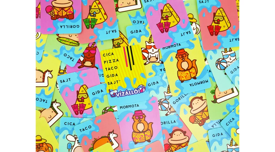 Csapj fel egy kártyát, és mondd ki a sorban következő szót: cica, pizza, taco, gida… Ha ugyanaz van a kártyán,mint amit éppen kimondasz, azonnal csapj a paklira, különben megkapod azösszegyűlt kártyákat…De mit is beszélek, hiszen már mindenki ismeri a frenetikus hangulatot biztosító partijátékot! Olyan verzióját viszont még nem láttáatok, amit akár a strandra is vihettek a vízálló kártyái miatt!