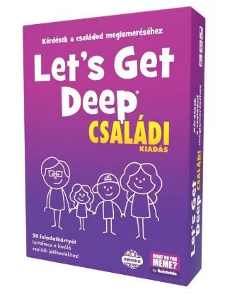 Ismered a családodat? Vajon mindent tudsz azokról, akik mellett felnősz vagy felnőttél? Megérkezett a What Do You Meme alkotóitól a Let’s Get Deep Családi kiadása, amiben három szinten találtok kérdés lapokat, melyek segítenek jobban megismerhetitek egymást, és közelebb hozhatjátok egymáshoz a famíliát. 50 jégtörő, 100 mély és 100 méllyebb kérdéskártyával.